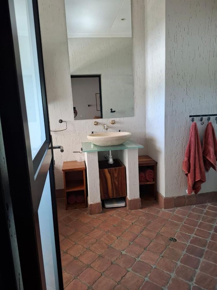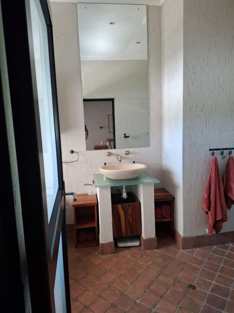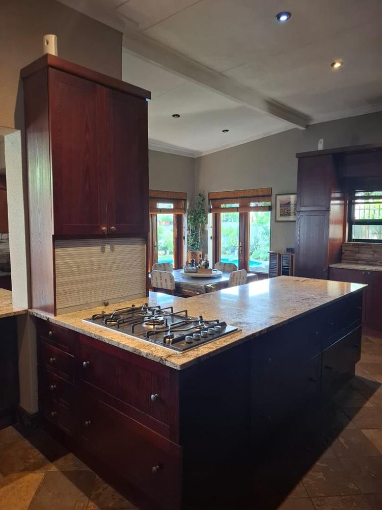 The main dwelling is an expansive 573 sqm, featuring a well-appointed lounge, dining room, and TV room. The kitchen is equipped with built-in cupboards (BIC) and built-in stove (BIS), complemented by a scullery for added convenience. Entertain guests in the spacious entertainment room or relax in one of the five generously sized bedrooms, each furnished with BIC. The home also boasts five modern bathrooms, ensuring comfort and privacy for all residents.