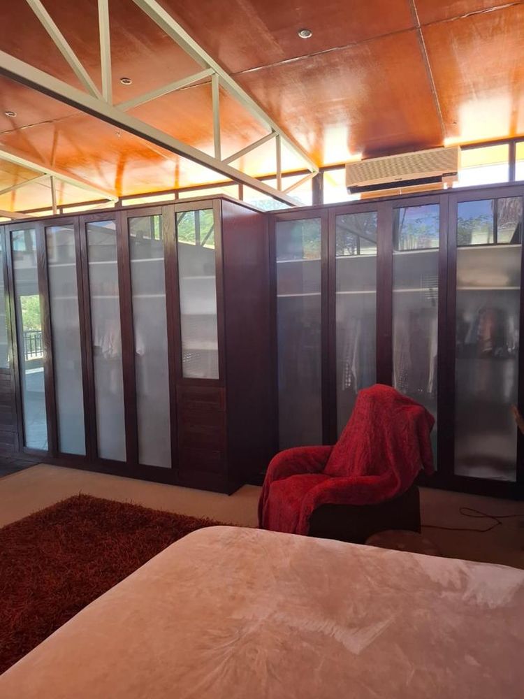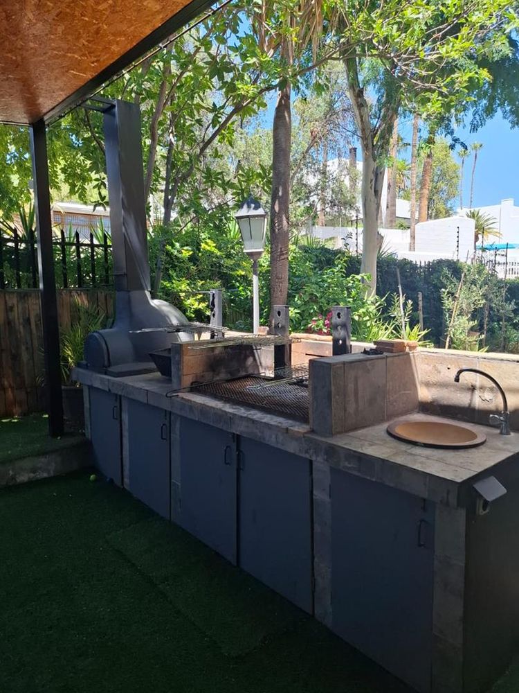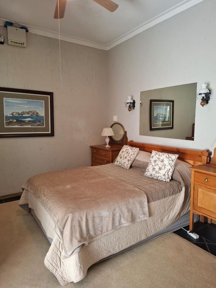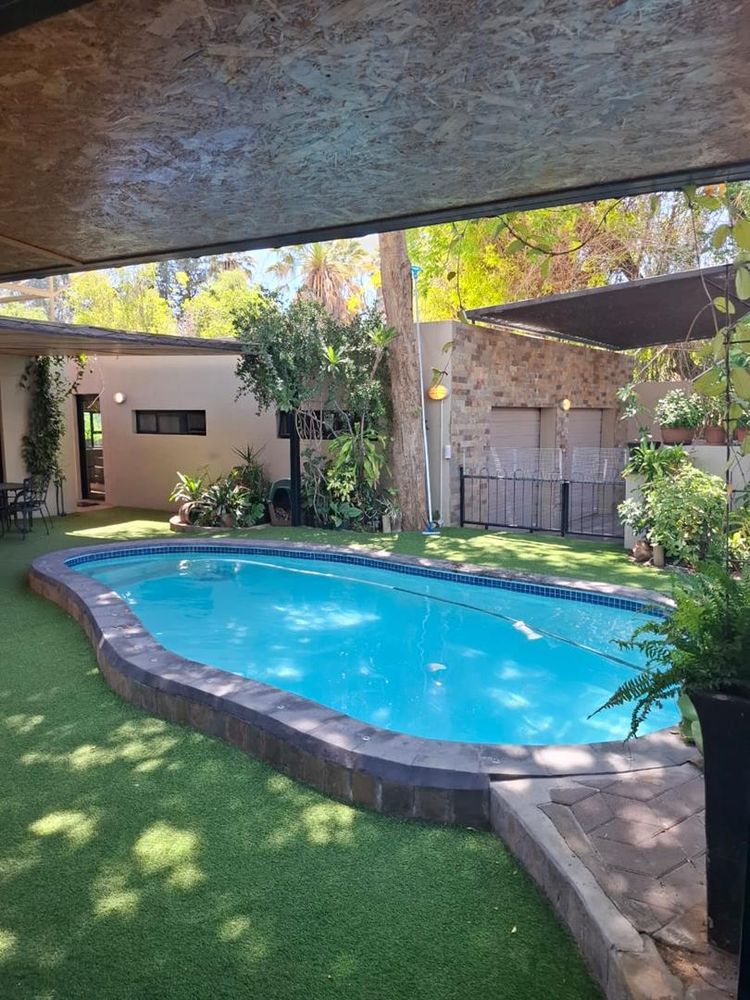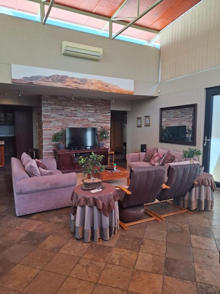 The property is further enhanced by practical features such as garages totaling 80 sqm, storerooms, a laundry room, and a sparkling swimming pool. Security is paramount with electrified boundary walls and an alarm system. Additional comforts include air conditioning and an off-grid solar electricity system with approximately four batteries, ensuring energy efficiency and sustainability.